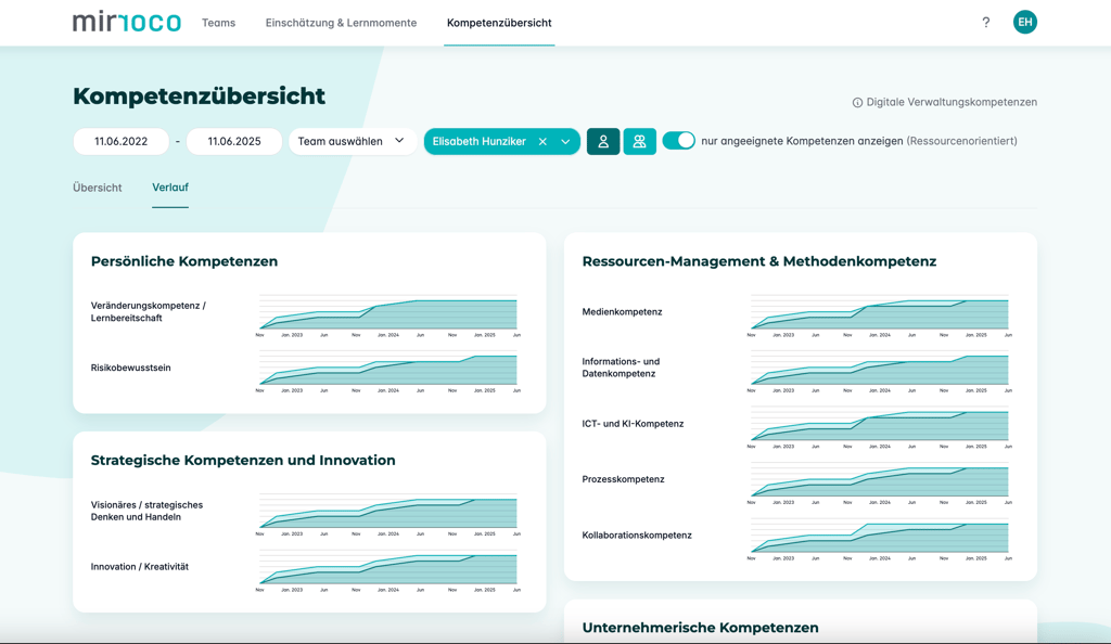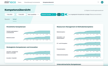 Neu in der Kompetenzübersicht: Der Kompetenzverlauf zeigt, wie sich Kompetenzen über die Zeit entwickeln – sowohl bei Selbst- als auch Fremdeinschätzungen.